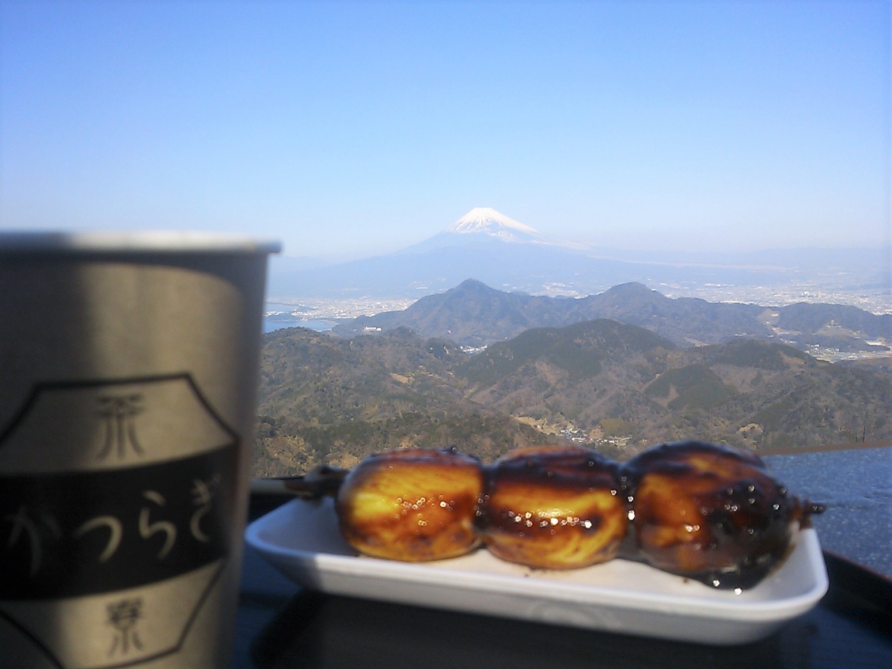 かつらぎ茶寮のオープンデッキで、富士見だんごを食べながら、のんびりと景色を楽しむのも良し。富士見の足湯に浸かりながら、のんびりと景色を楽しむのも良し。