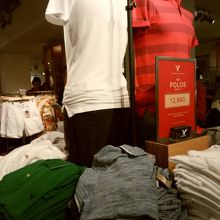 ららぽーとTOKYO-BAY(1階)にあるアメリカンイーグルのショップです。カジュアルウェアを中心としたショップ内はTシャツ、ポロシャツなどをはじめ、お手頃な値段で買うことができる洋服が充実していました。また、サマーセール開催中ということもあり、普段よりお得な値段で買うこともでき満足しました。