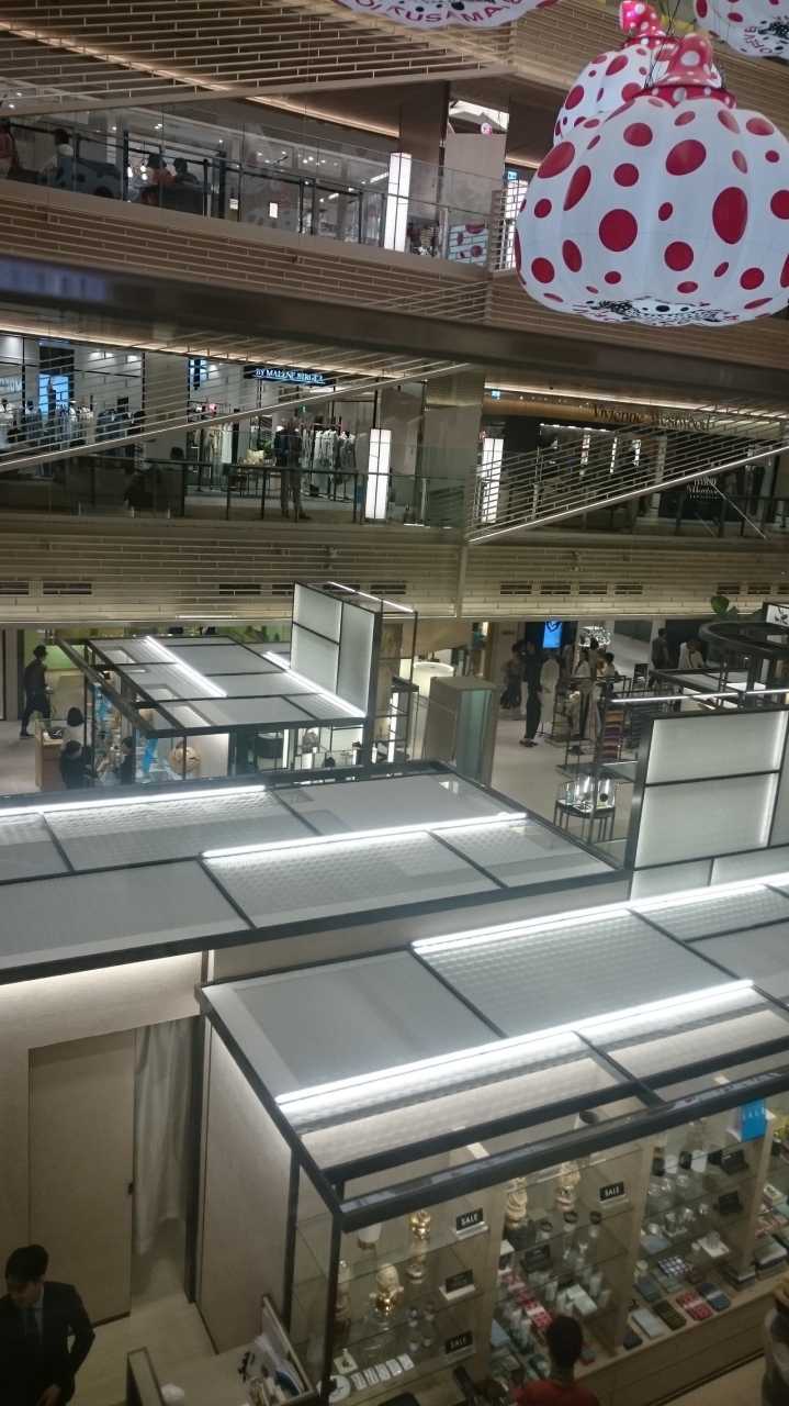 デパートが消えたのはとてもさびしいですが、店内の様子を見て時代はやはりこの方がいいのかなと感じました。広い空間を取った吹き抜けの周りのセンスのよい店が並ぶ。もう何年も昔ハワイや香港で見てビックリしたようなショッピングセンターと同じものが今日本にもどんどん増えている。こちらの地下には能楽堂も備えられている。同じく地下には食品街もあるがこれもまたデパ地下とは違う作りになっている。生鮮食料品などはないのかちょっと寂しいですが興味をそそられるものは沢山あります。