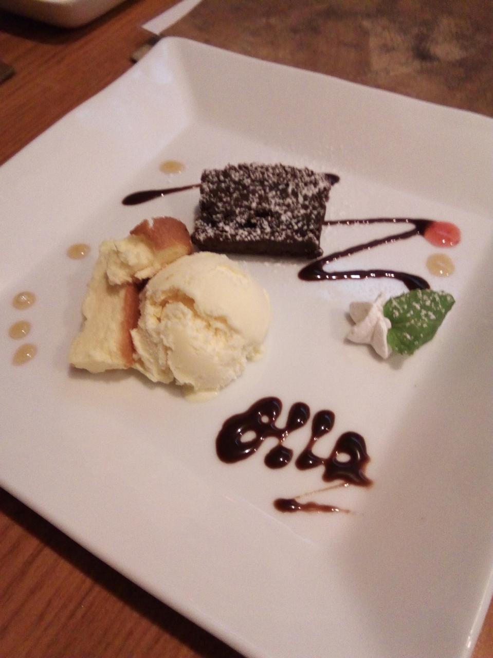 前菜、お肉、パエリアorパスタ、デザートの順にいいタイミングで運ばれてきます。運んでくれる店員さんも美人です。