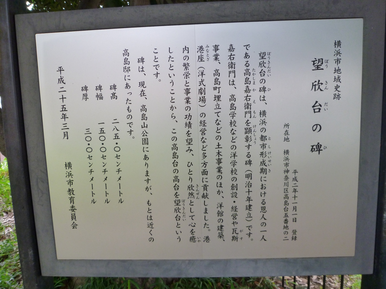 望欣台の碑という碑が高島山公園にあると、耳にはしていたのですがその場所が長年分からずほぼ記憶から消えかかっていましたが、反町から横浜へ抜けようと沿ていて偶然見つけました。