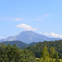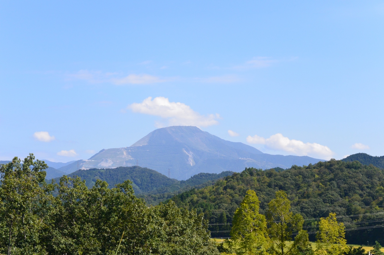 名神高速道路から見えました。滋賀県の最高峰ですが、どう見ても一部が人為的に削り取られて、山の地肌が見えてしまっています。緑濃い季節に見るとよけいにそこが目立っていました。写真は北陸自動車道の神田パーキングからのものです。