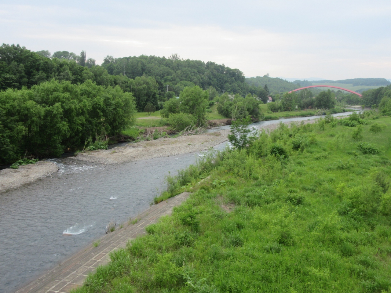 美瑛川は別名「ブルーリバー」というそうだが、自分がみた美瑛川は雨の日だったこともありブルーとはほど遠い川だった。ただ、川の説明板には「水源には十勝岳(硫黄山)があり、そのため川水が濁りかつては乳白色だった」とあり、こちらには納得できた。