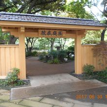 「彼我庭園」と大きく書かれた立派な冠木門を入ると落ち着いた日本庭園が広がっています。ぐるっと一回りしていると以前からあった水琴窟を見つけましたが 以前は自分で水を流して水琴窟の音を楽しめたのですが 覆いで囲まれてしまっていて 少し寂しい気がしました。