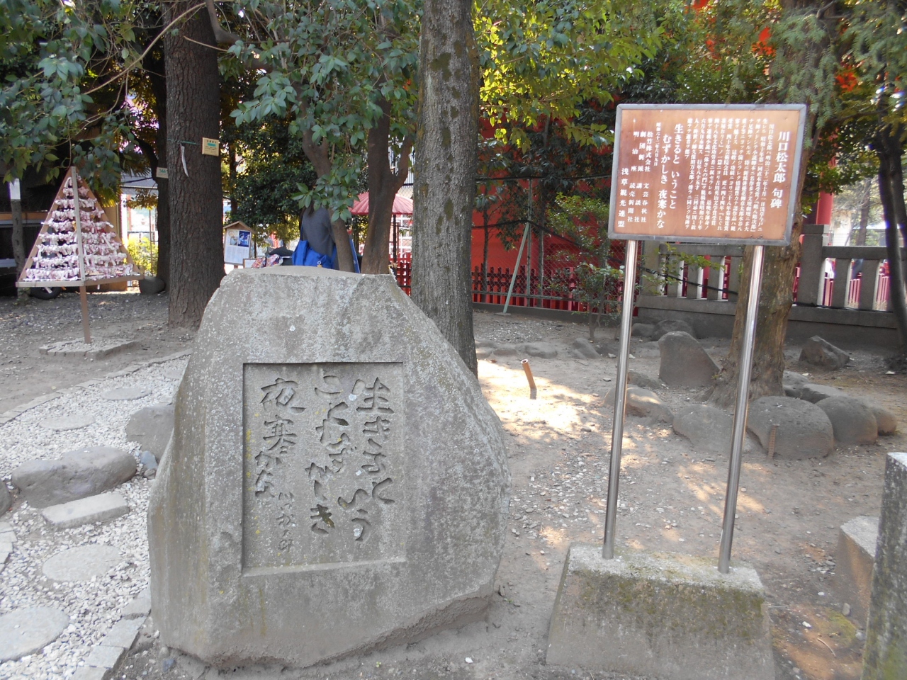 浅草の「浅草寺」の境内にはさまざまな著名人の句碑などが建っていますが、その一つがこちらの「川口松太郎句碑」です。