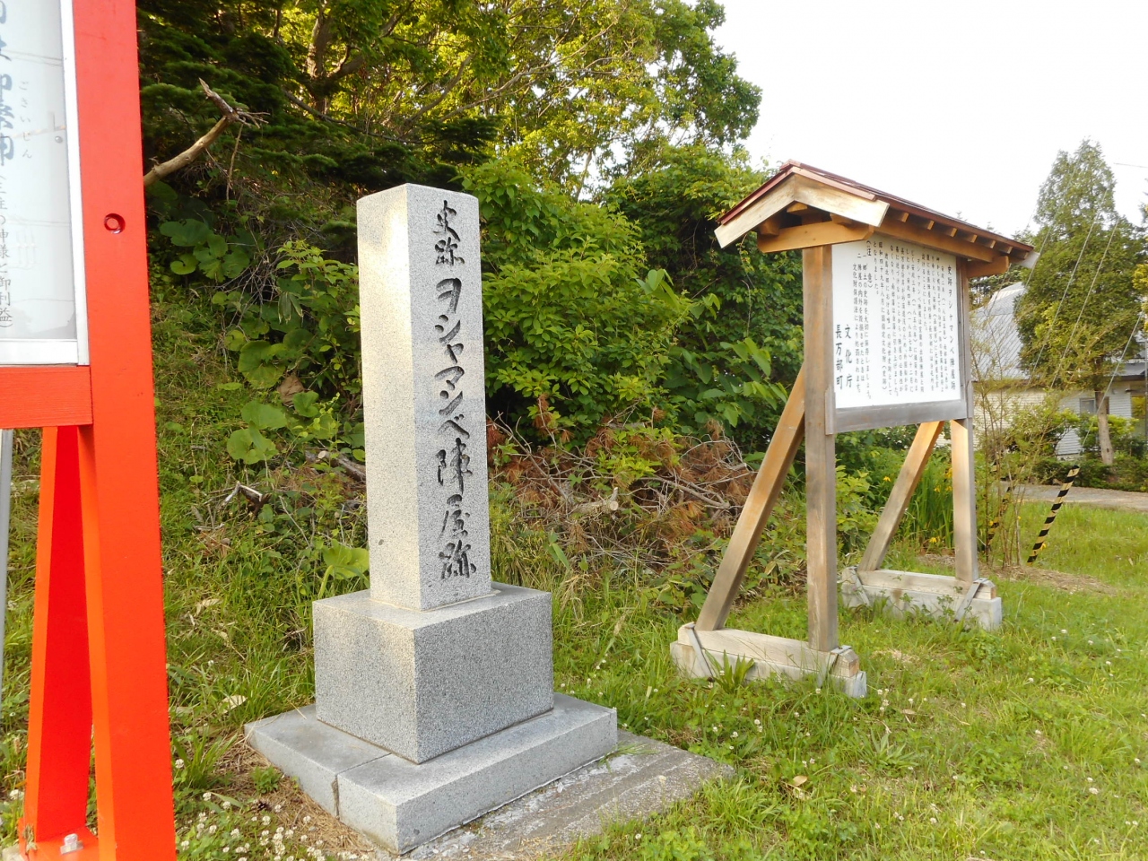 江戸幕府の命を受けた南部藩が、蝦夷地警備のため、南部藩室蘭陣屋のヲシャマンベ分屯所として設置した「ヲシャマンベ陣屋跡」の石碑がある。