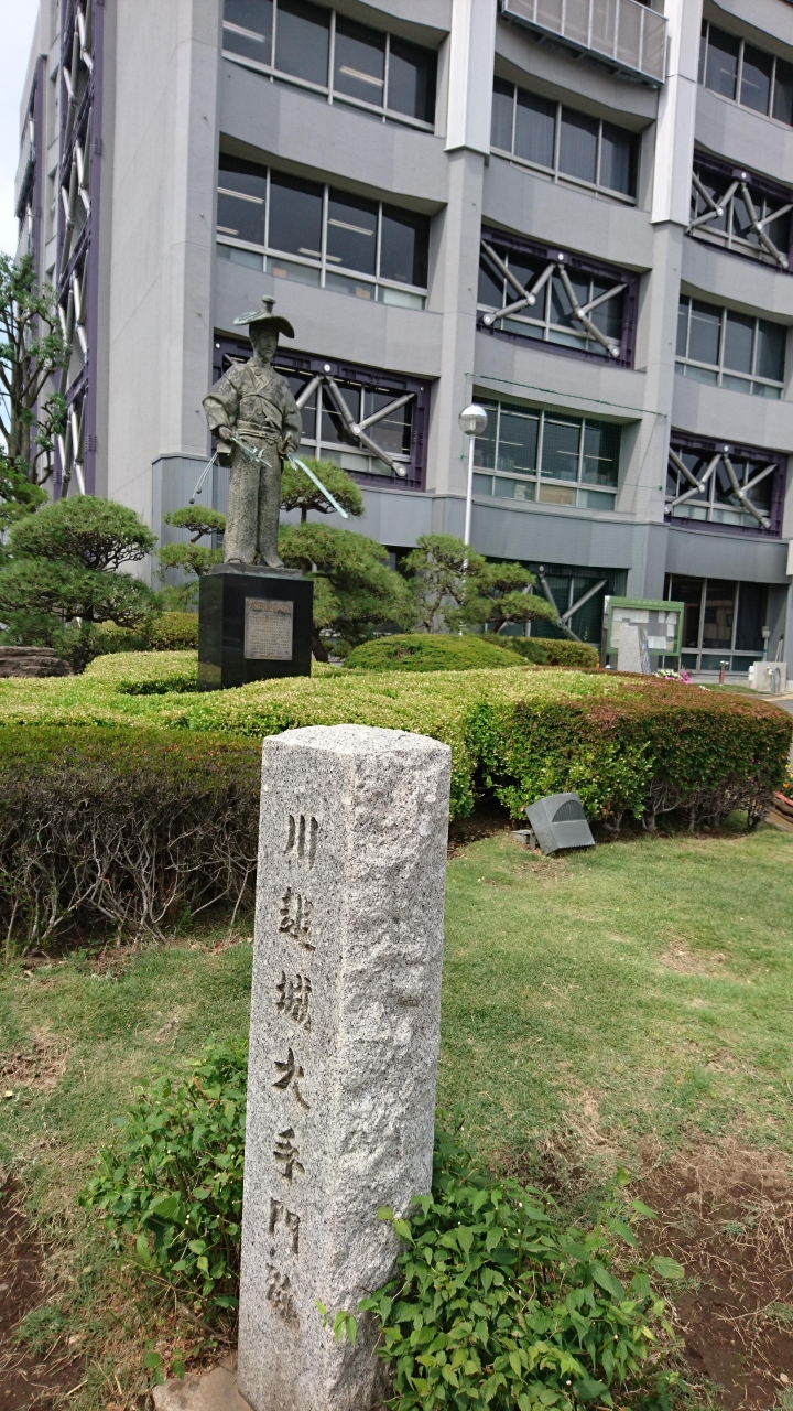 市役所の前に建っているブロンズ像です。大田道灌は、名前は有名で知っているんですが、肖像画というのを見たことなくて、ブロンズ像を見ても、ちょっとピンときませんでした・・。狩りをしている姿でしょうか。ブロンズ像の前に大手門跡という石碑があって、ここまで川越城だったんだと、ちょっと驚きでした。