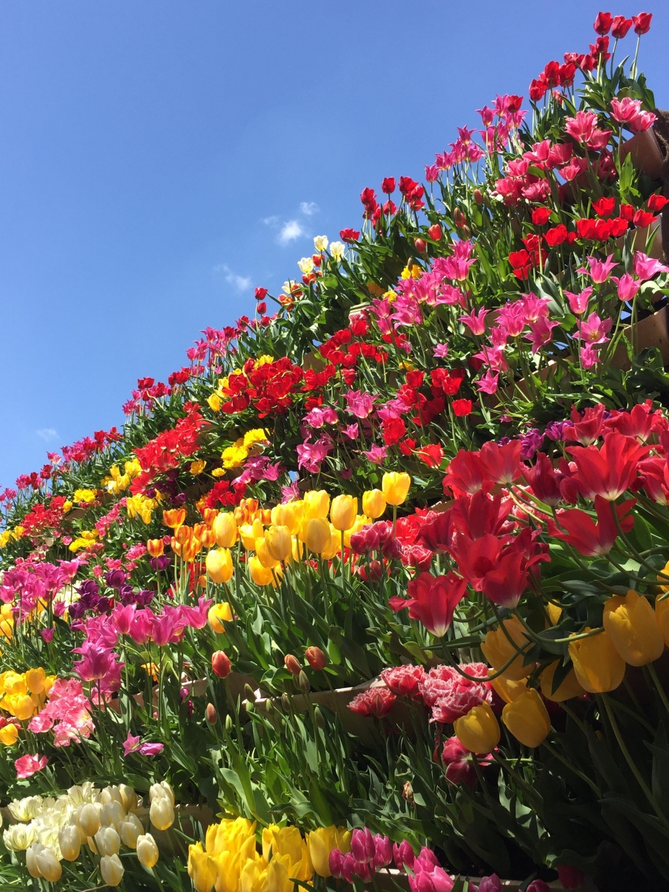 最大の見頃は2週間程度しかない貴重なチューリップの祭典です。会場内はお花畑だけでなく、ご当地グルメフェアーや写真撮影会、クイズ大会に、ハンドメイドの体験コーナーや館内施設ステージの模様し物などイベント盛りだくさんでした。