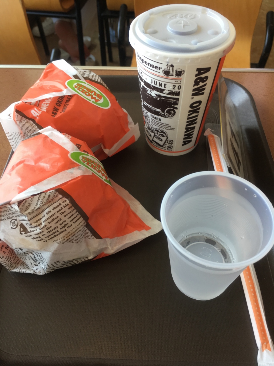 沖縄、ということで、那覇空港にあるA&Wでハンバーガーを食べることにしました。