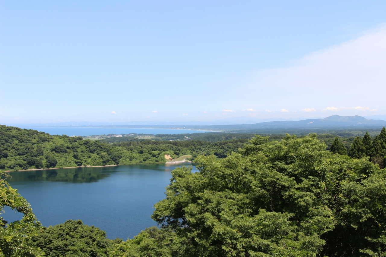 二の目潟が見える八望台を通過すると、道沿いの両側に、二の目潟と一の目潟が見えるポイントがありました。車通りが多くなかったので、少しだけ路駐して写真に撮りましたが、もっとちゃんとした展望台があるといいなと思います。