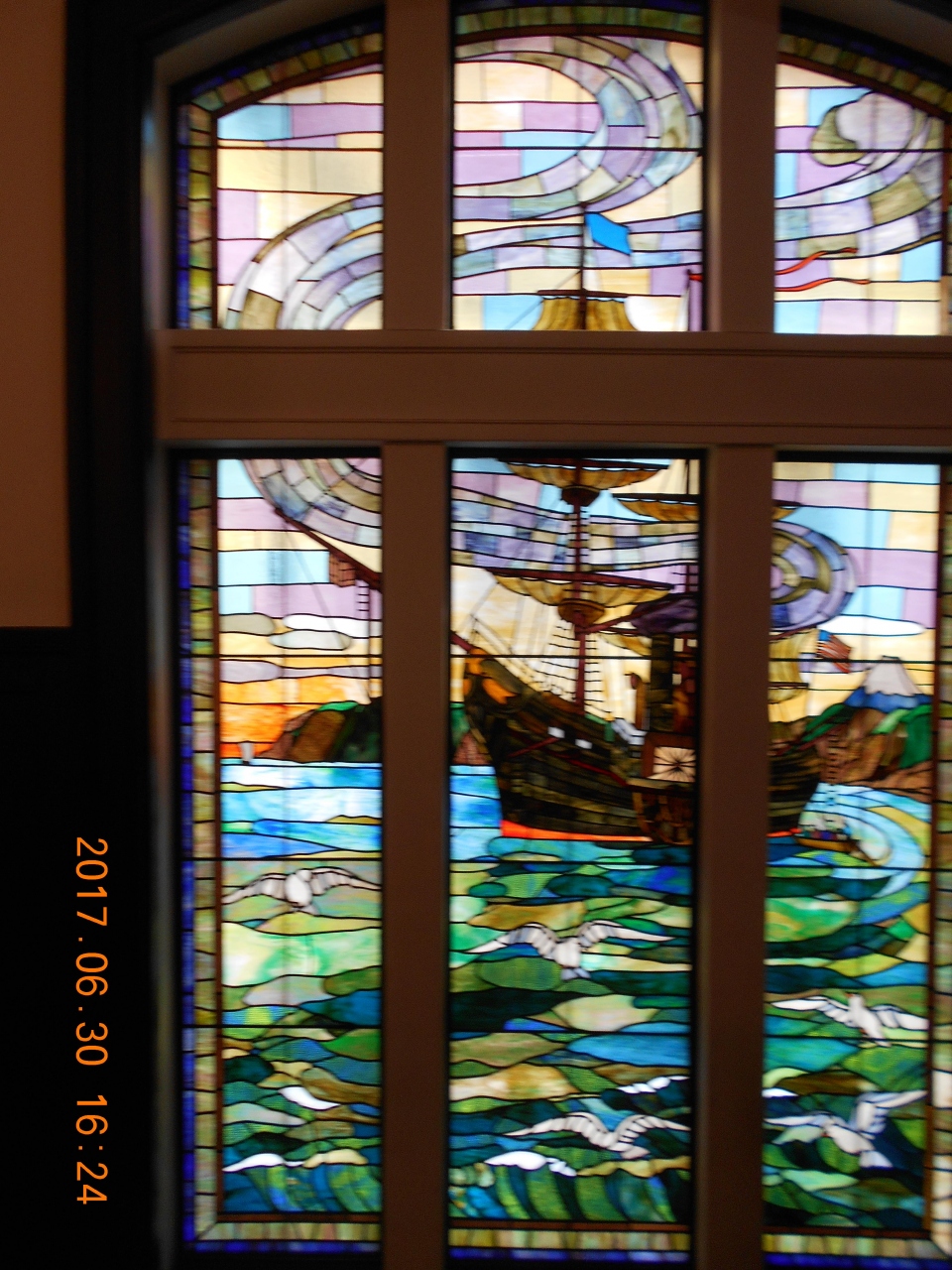 横浜開港50周年を記念して 市民の寄付金によって大正6年{1917年}に創建され 今年で100周年になるということです。ドームのついた赤煉瓦の建物の内部にはとても素晴らしいステンドグラスもあり、歴史を感じる建物です。