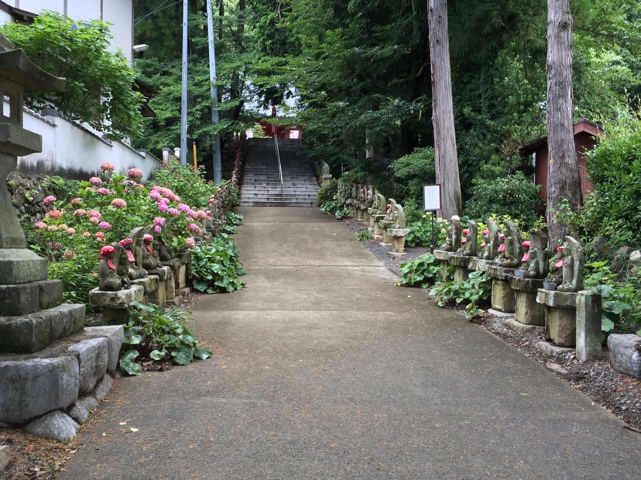 その後の弘法大師八十八ヶ所仏像が両側で見守るように並ぶ参道はアジサイが綺麗でした。