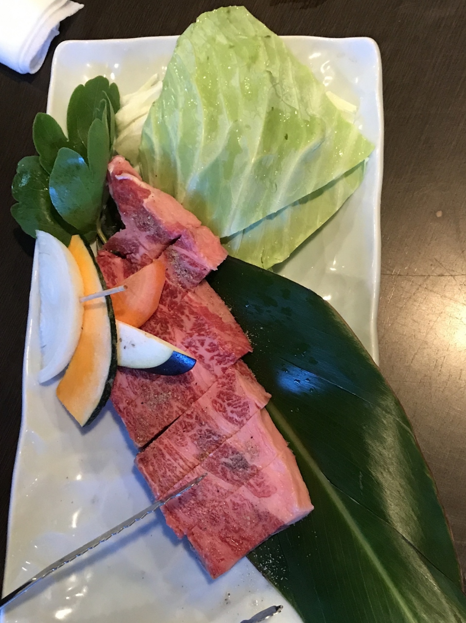 自分で焼き、タレは焼肉のタレと一緒ですが。