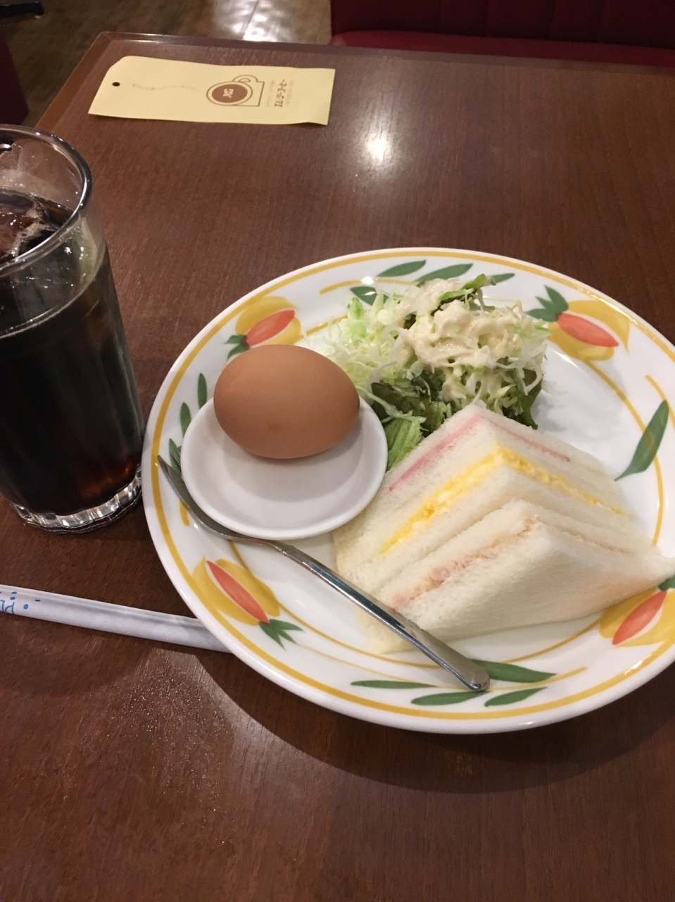 平日の午前中に、通りすがりにたまたま入った喫茶店。カジュアルなお店ではなく地元感が漂う店内には年配のお客さんが多く見受けられます。コーヒーを注文しモーニングサービスからはサンドイッチをいただきました。