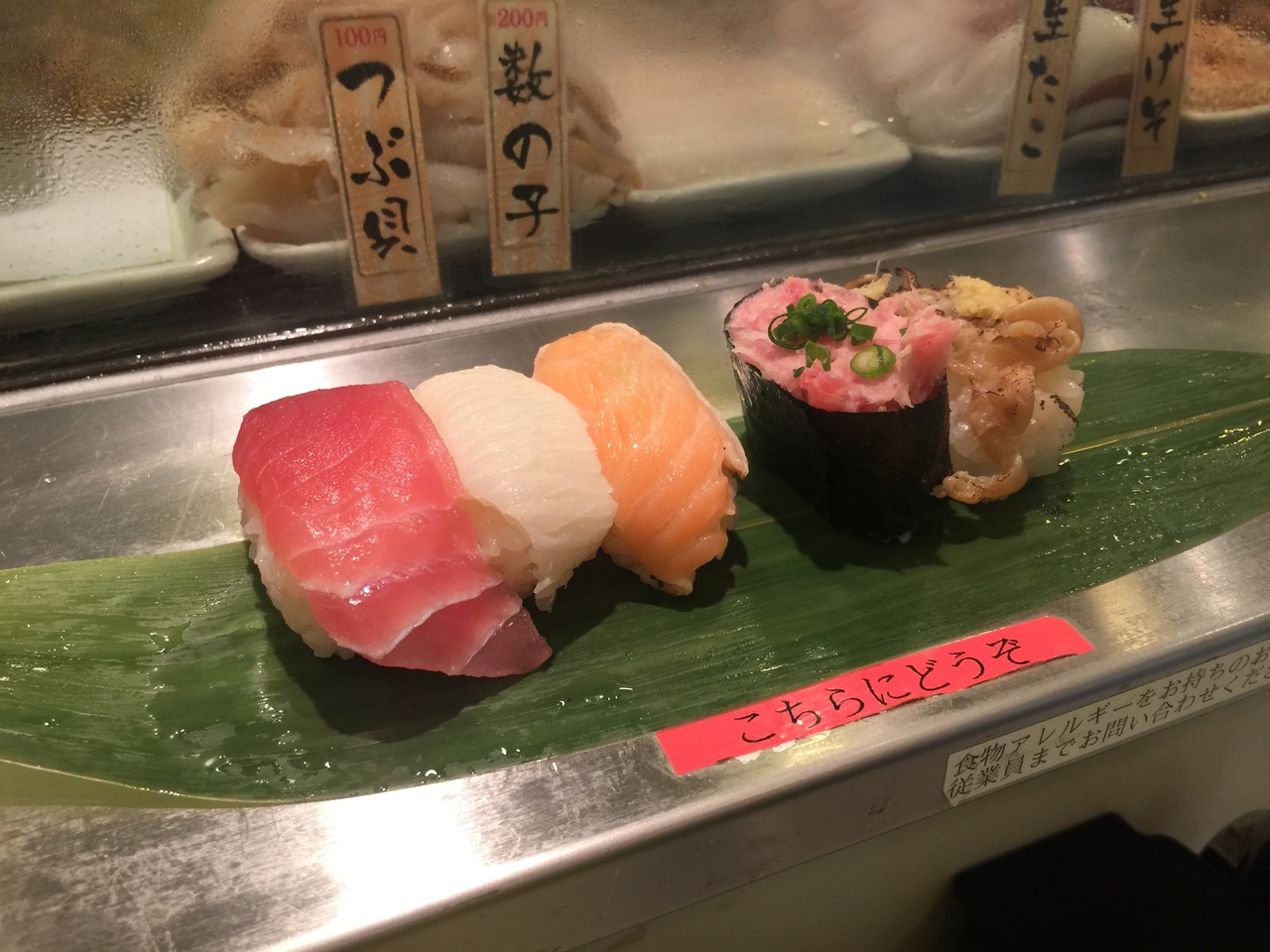だいたい一貫100円・150円くらいのネタをたのんでますね!