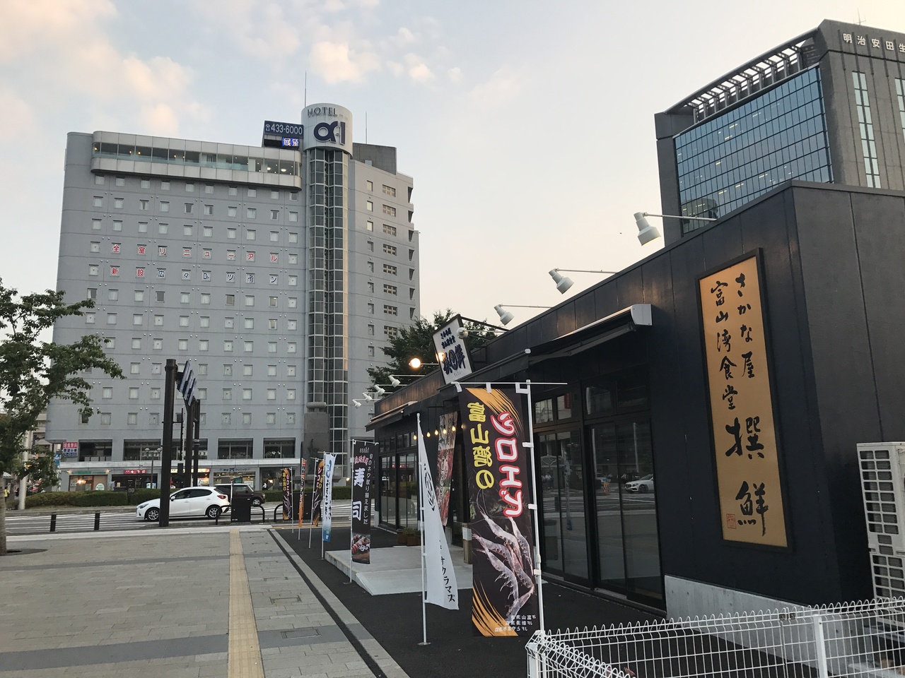 富山駅前の広場みたいな場所にありますが富山駅の南北で分断されているライトレールを直通運転するまでの限定営業らしいです。