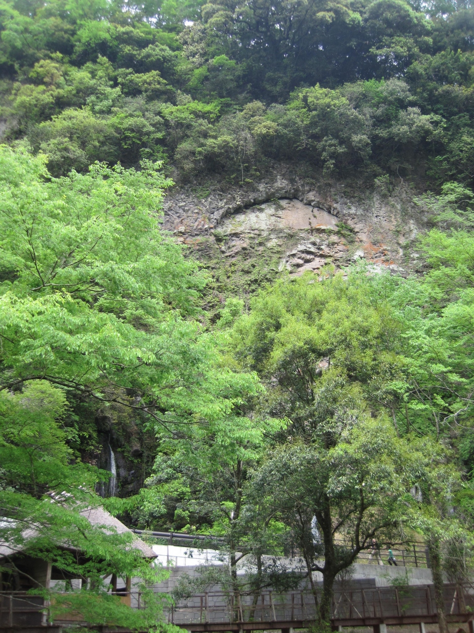 おのころ池から玉垂の滝を見上げた所にあるのが月形です。日形は崩壊して今はないそうです。言われてみれば三日月形に削られているのが分かります。綺麗に削られているのが不思議ですが、説明がないと素通りしてしまいそうなのが残念です。