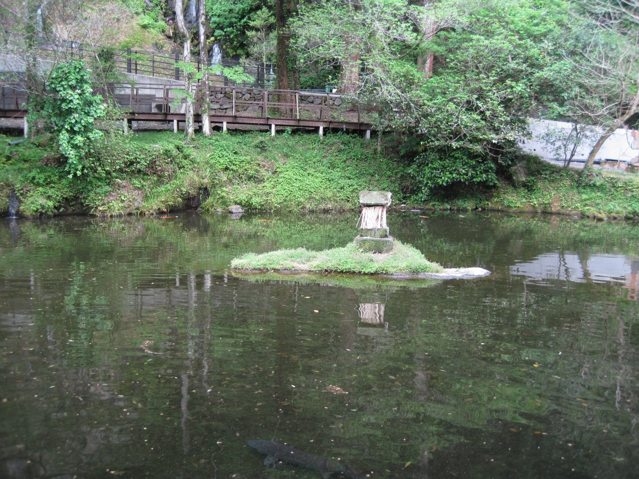 珍しいチョウザメが見られる池です。サメなのに淡水魚なのが不思議ですが、お子さんたちが興味深そうに探していました。大きな池で神聖な空気を感じることが出来ます。