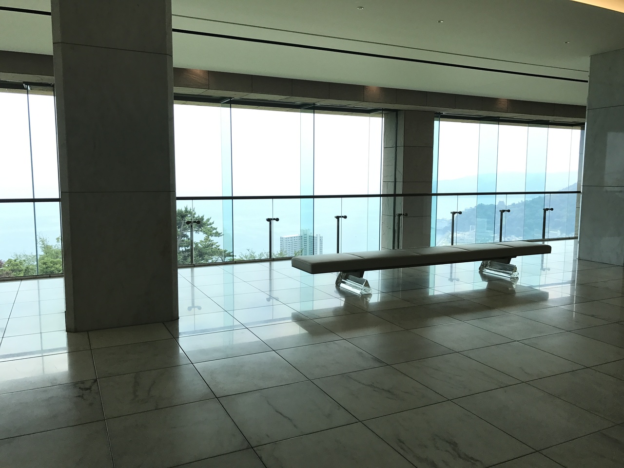 熱海駅からバスで5分ほど山登ったところにあります。入り口からは、さらに長いエスカレーターに7本乗ると、美術館の2階につきます。