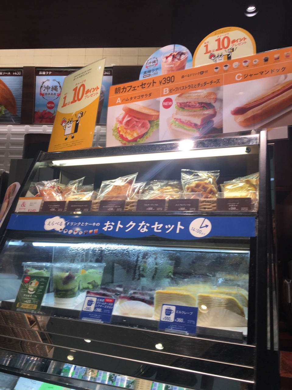 成田空港第二ターミナルにあるカフェチェーンです。午前中の便だったため朝ごはんを食べようと利用しました。成田エクスプレスから降りて改札を抜けたらすぐにあるため便利です。店内にはスーツケース置き場があり鍵もつけれるため安心でした。
