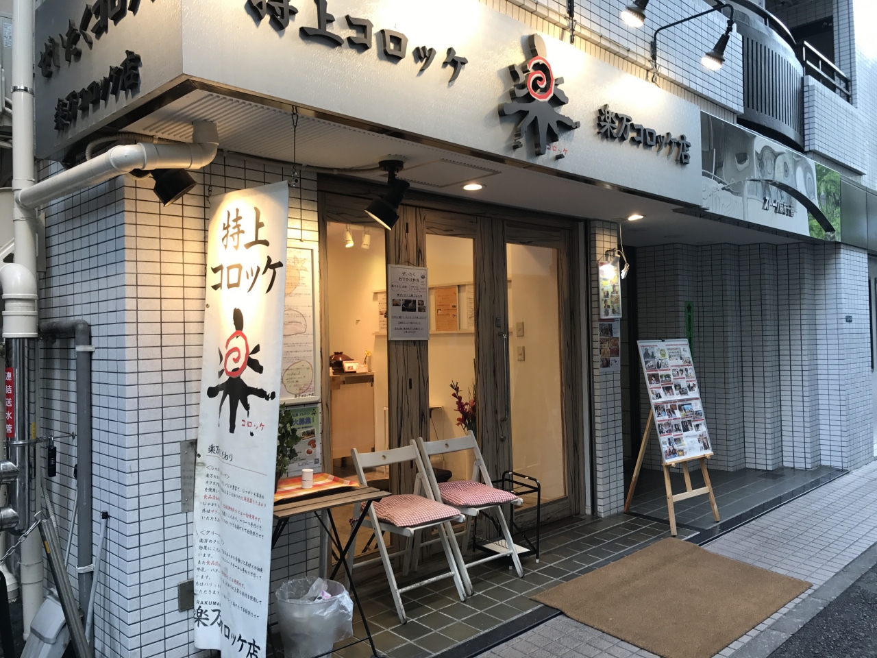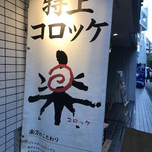 麻布十番にある高級コロッケ店。麻布十番商店街を抜け六本木ヒルズ方面に向かってひとつ細めの道に入った所にあります。通りにある小さな看板?が目印。