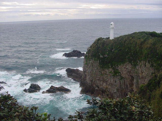 足摺岬の灯台は、やはり展望台から眺める遠景がじつに美しいです。さらに展望台から5分くらい歩くと天狗の鼻という場所があるのですが、ここから見る灯台がベストでしょう。断崖、荒波、波しぶき。すべてが絵になる風景にしばらく時を忘れます。