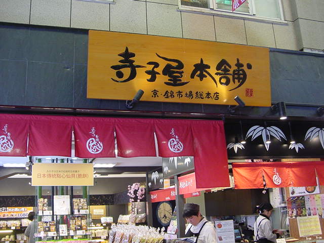 おかきのお店。京都では伏見稲荷などの観光地でも寺子屋を見かけました。香ばしいおかきはお土産にしても喜ばれます。バラでも買えるので、錦小路の食べ歩きにも便利です。春は桜ですが、季節限定の味もなかなか魅力的だと思います。