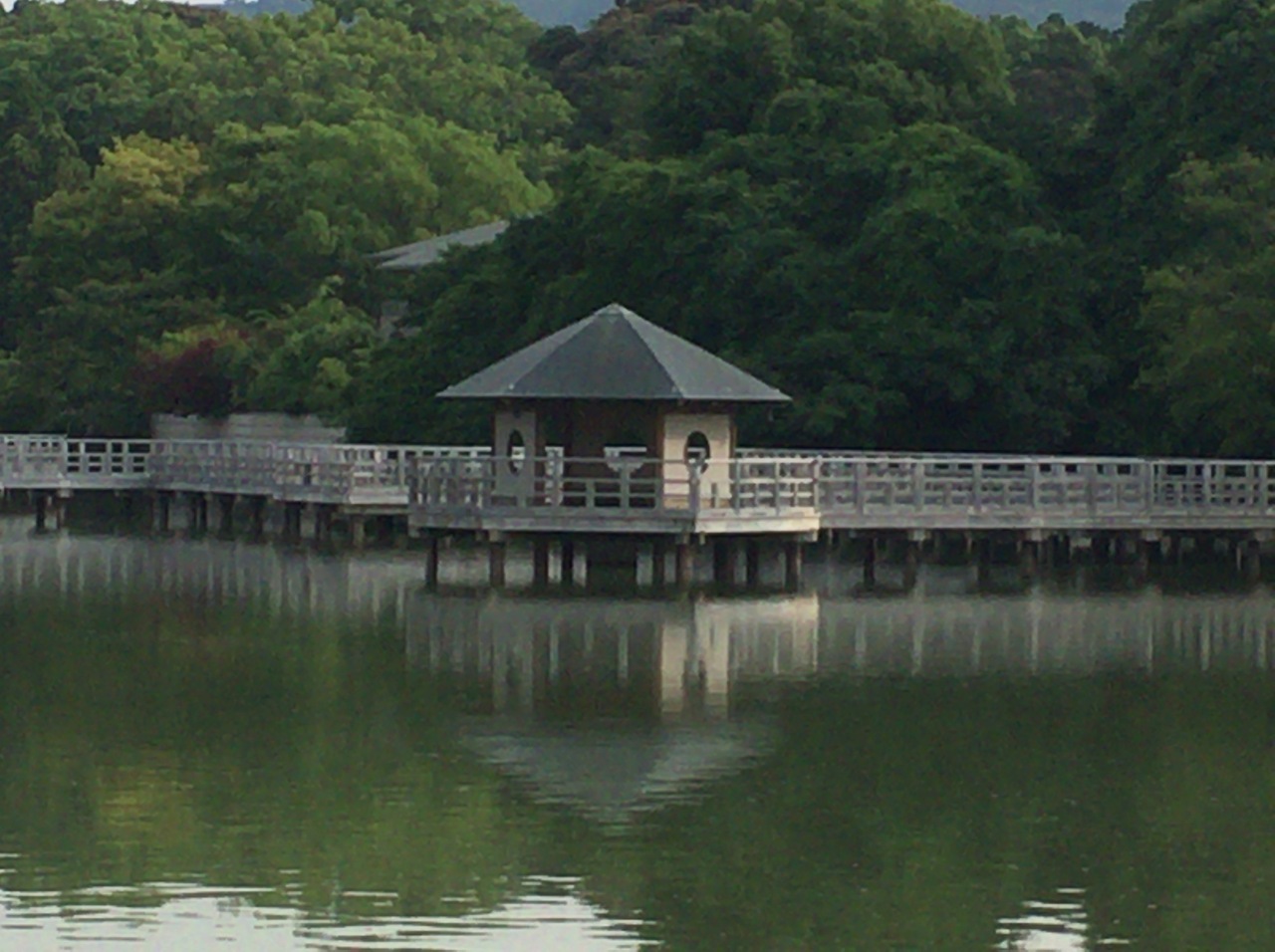かなり広い池があり、道路側から天満宮を見るのもいいですが、この橋をゆっくり歩いてみると、かなり優雅な気分になれます。