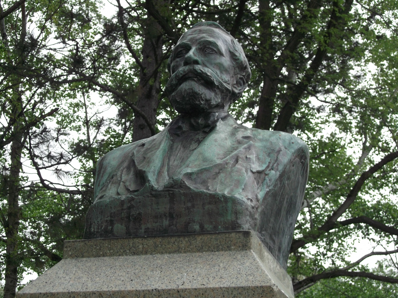 北海道大学キャンパスの正門に近いところにクラーク博士の像がありました。羊が丘にある指をさしている全身像とは違ってこちらは半身像ですが、すぐ近くまで寄って見ることができました。観光客のみなさんが順番に写真撮影する場所で、例にもれず私もとらせていただきました。