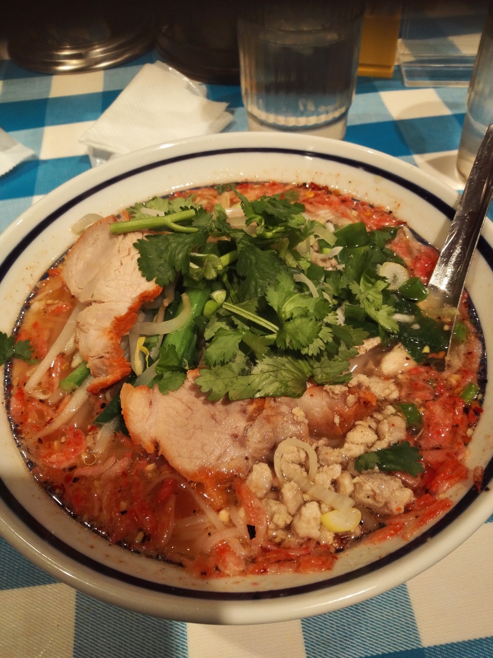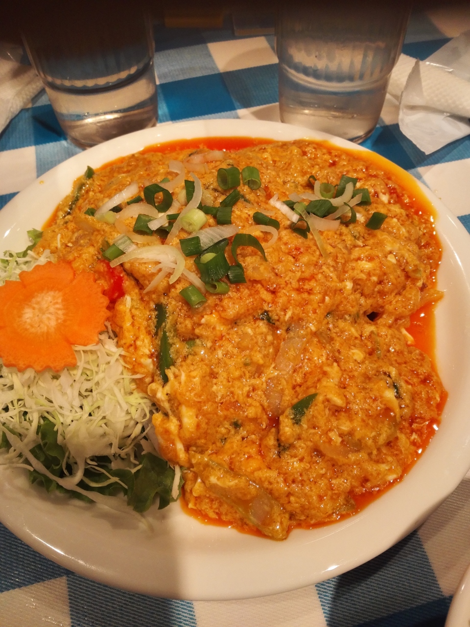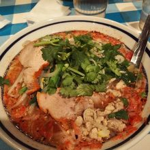 バンコク旅行から数か月後、ルミネの中を歩いていた時に、匂いにつられて入ってしまいました。中々混み合っていていました。カウンター席とテーブル席があり、テーブル席の場合は相席になるようです。バンコクでも気に入って何度か食べたトムヤムラーメンとバンコクで食べそびれたプーパッポンカリーを注文。トムヤムラーメンはとても美味しくて、むしろバンコクで食べた物よりも好みの味でした。プーパッポンカリーも美味しかったです。