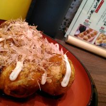 地下2階食料品売り場の一角にあるカウンターのみの店舗です。昔はたこ飯のセットなどもありましたが、今は明石焼き、ノーマルたこ焼き、季節限定たこ焼きといったメニューになってます。(明石焼きとたこ焼きのハーフ&ハーフもあり)中がトロっとした大振りのたこ焼きです。