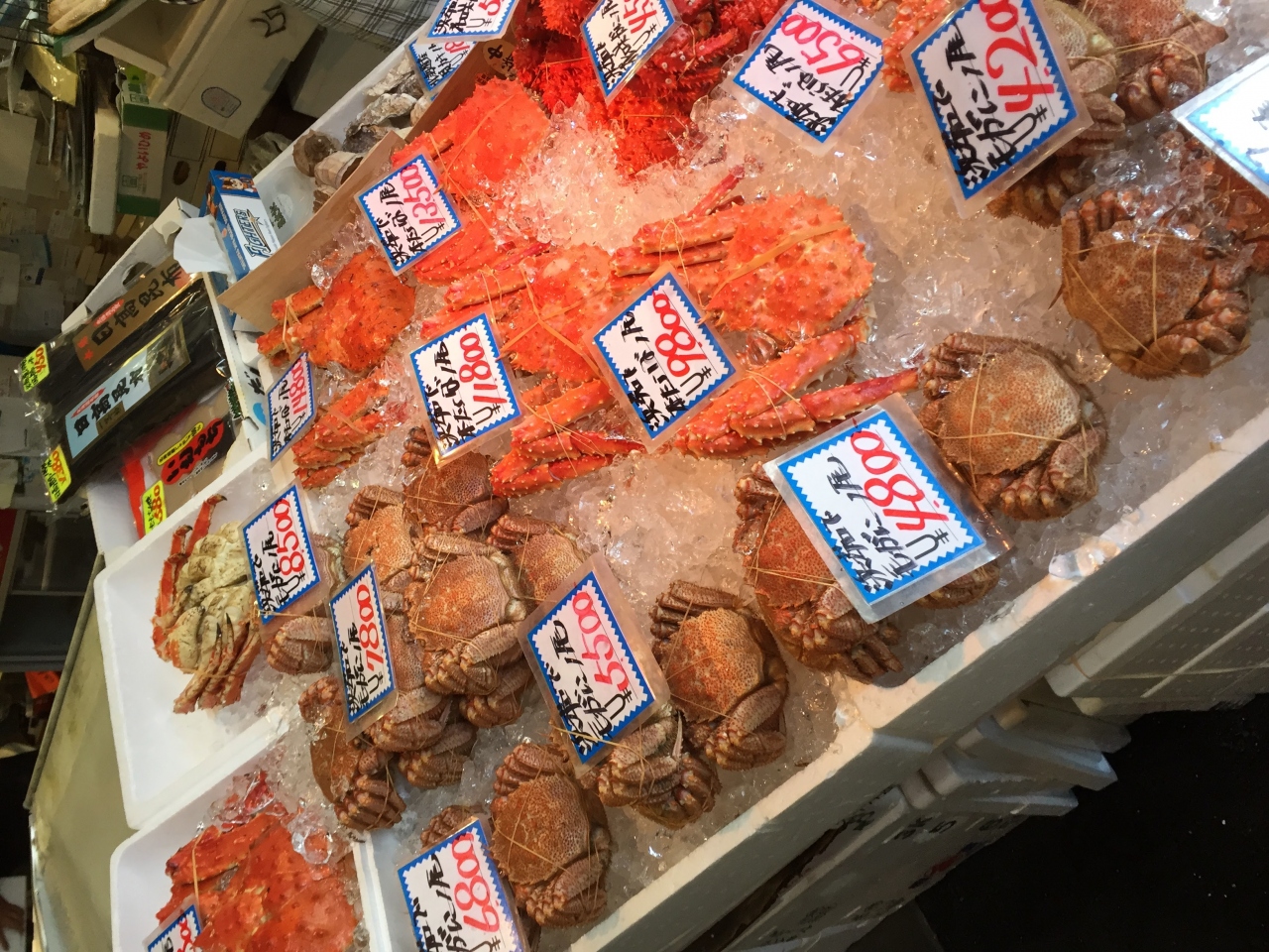 魚屋さんでカニやいくらなど試食もさせてくれ、仲良くなると値段交渉もしてくれます。いろんなお店で話しをして相場を把握し、値段交渉をするのも楽しかったです。一周まわって戻ってくると覚えてくれていてさらに安くしてくれたので勢いあまって大きなカニを北海道からクール宅急便で実家へ贈り物しました。仲良くなると提携のお店も教えてくれ名刺をくれ、そこで海鮮丼をいただくと10%くらい値引きしてくれました。