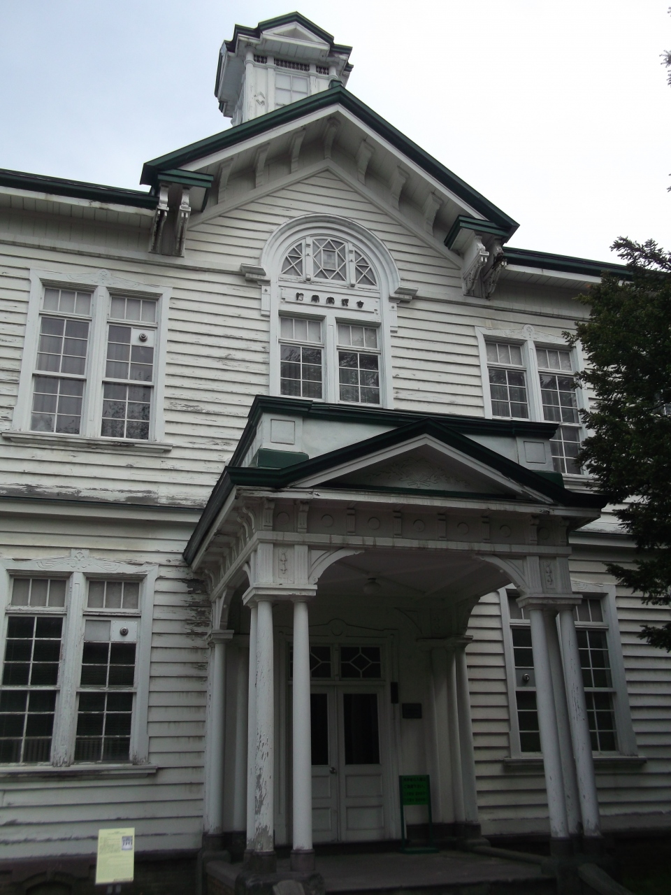 北大のクラーク像の近くにある緑の屋根と白い建物がひと際目立つ木造の洋館です。古河財団から寄贈されたもので、今は研究施設として使われているようです。中には入れないので内部の様子はわかりませんが、まっ白の建物は空の青さと芝生の緑の中で一層映えて見えました。