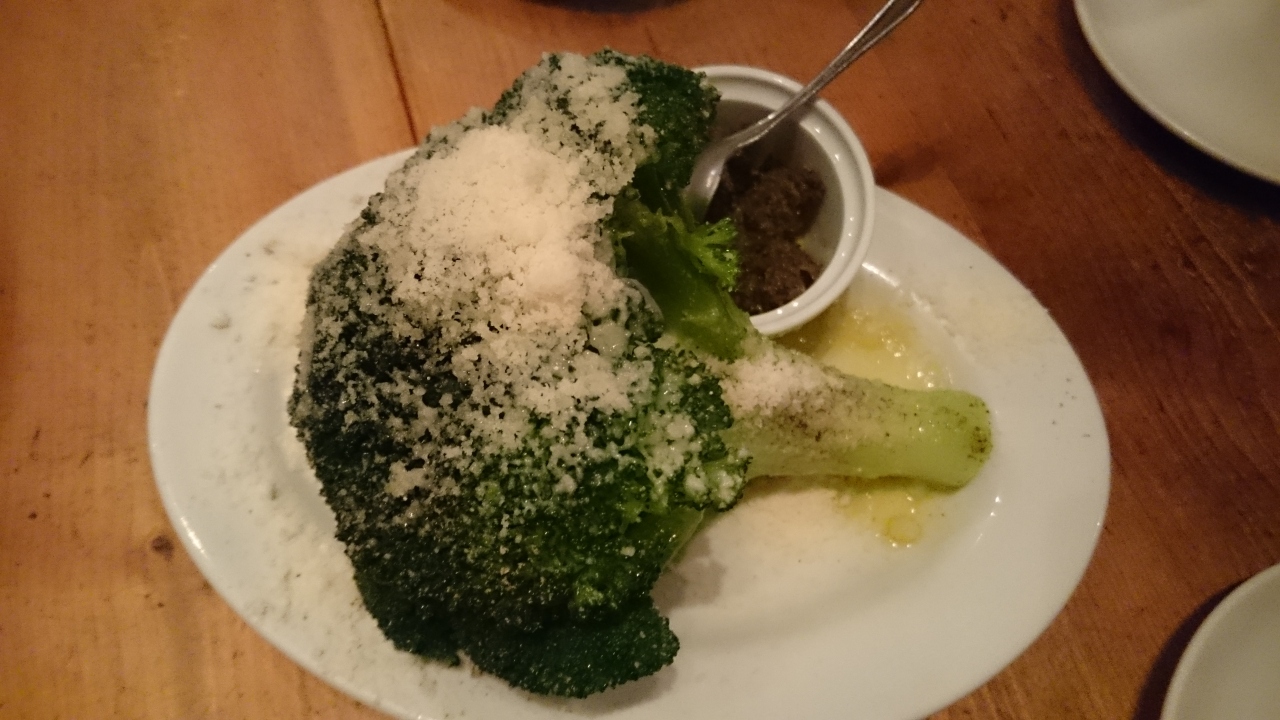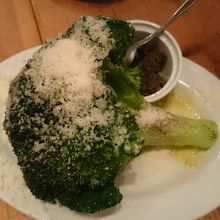 何もカットされていないブロッコリーがごろっと1つテーブルに運ばれてきます。