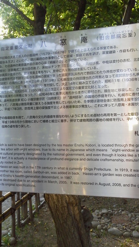 中島公園内の、無料で散策できる「日本庭園」の中にあります。もともとは滋賀県にあった物を移築したようです。日本庭園はそんなに大きくはありませんが、静かで落ち着いたところでした。ペットの散歩は出来ないようです。池もあるし、草も生えているので虫刺されにご注意!