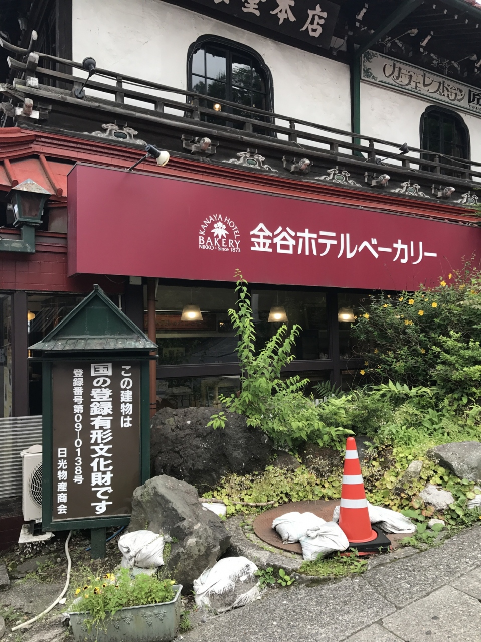 日光には、何店舗も金谷ホテルのレストランやベーカリーがありますが、こちらは神橋付近にある、外観も明治っぽいレトロな落ち着いた雰囲気の金谷ホテルベーカリーがあります。やはり、揚げないカレーパンは夏の猛暑でも美味しいです。