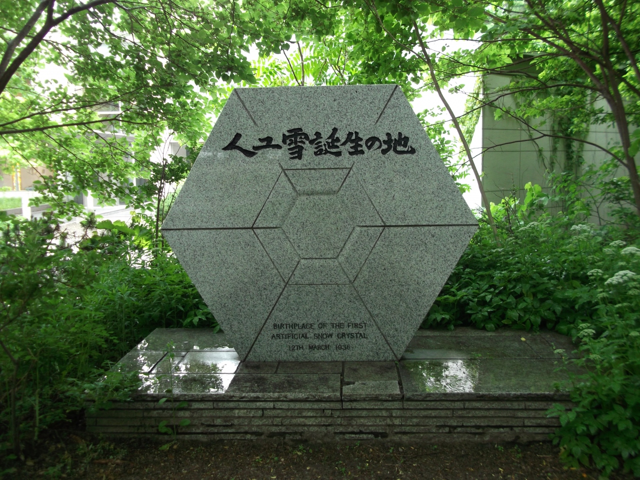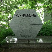 北大博物館の近くに雪の結晶を模した人工雪誕生の地の石碑がありました。中谷宇吉郎博士がここにあった研究室で初めて人工雪を造るのに成功したという場所です。人工雪とはいかにも北海道らしい研究のような気がして科学者のロマンを感じる場所でした。