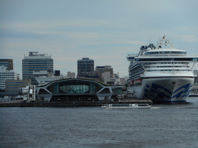 みなとみらい線日本大通り駅から徒歩7分で大さん橋ターミナル入り口に着きます。もう少し歩くとターミナルビルが見えます。ロイヤルウイングのほかにも、豪華客船が止まっていて、そのお客もかなりいたし、ロビーは、蒸し暑かった。中には、飲食店や、ショップも入っています。乗船まで、展望デッキで見るのもいいですよ。乗船して、点心セットを食べたらデッキに出ると、ベイブリッジをくぐるのを見たり、みなとみらい付近を一周してかえってきます。他に時間でランチクルーズ、ディナークルーズがあります。お値段が高くなりますが、一回は、経験してもいいかも。ちょっと旅した気分になれます。