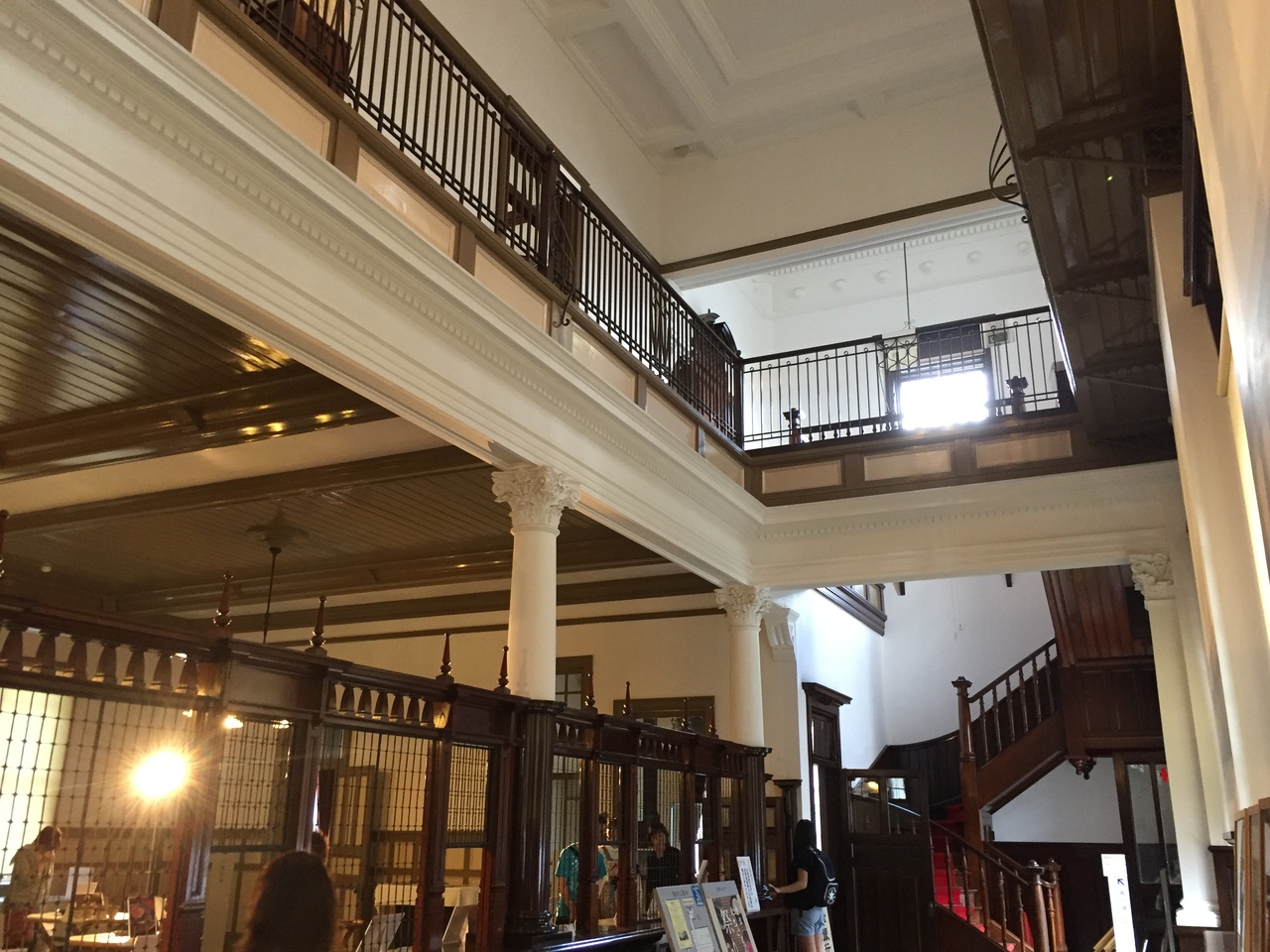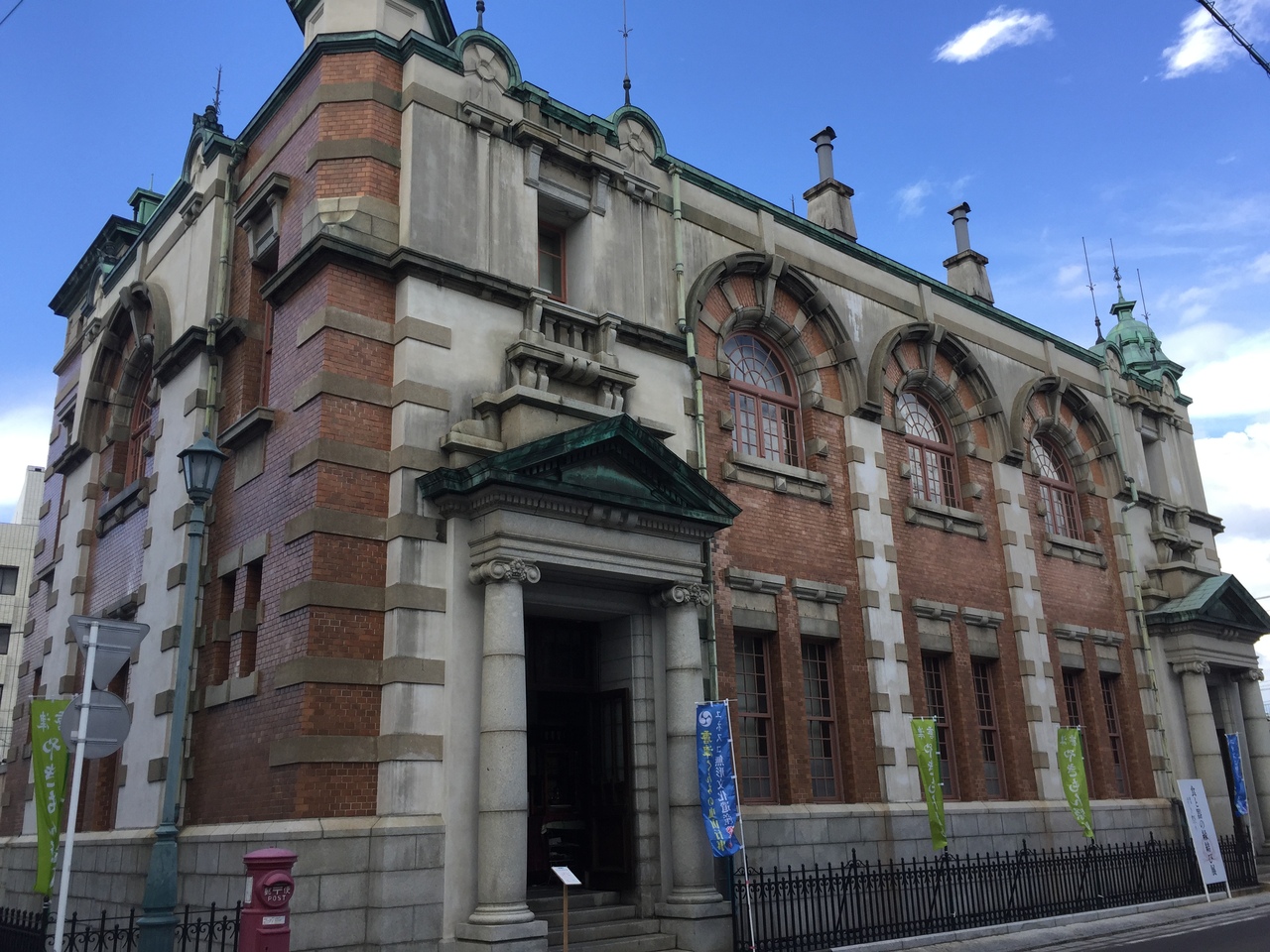 ひときわ目を引く歴史的な建築物です。東京駅を設計したことで知られる建築家の辰野金吾氏が監修し、弟子の清水組の田中実氏が設計したものです。平成9年まで実際に銀行として使われ、その後、唐津市に寄付されてから、市の文化財に指定されています。貴重な建物ですが、なんと無料で公開されていて、得した気分になりました。
