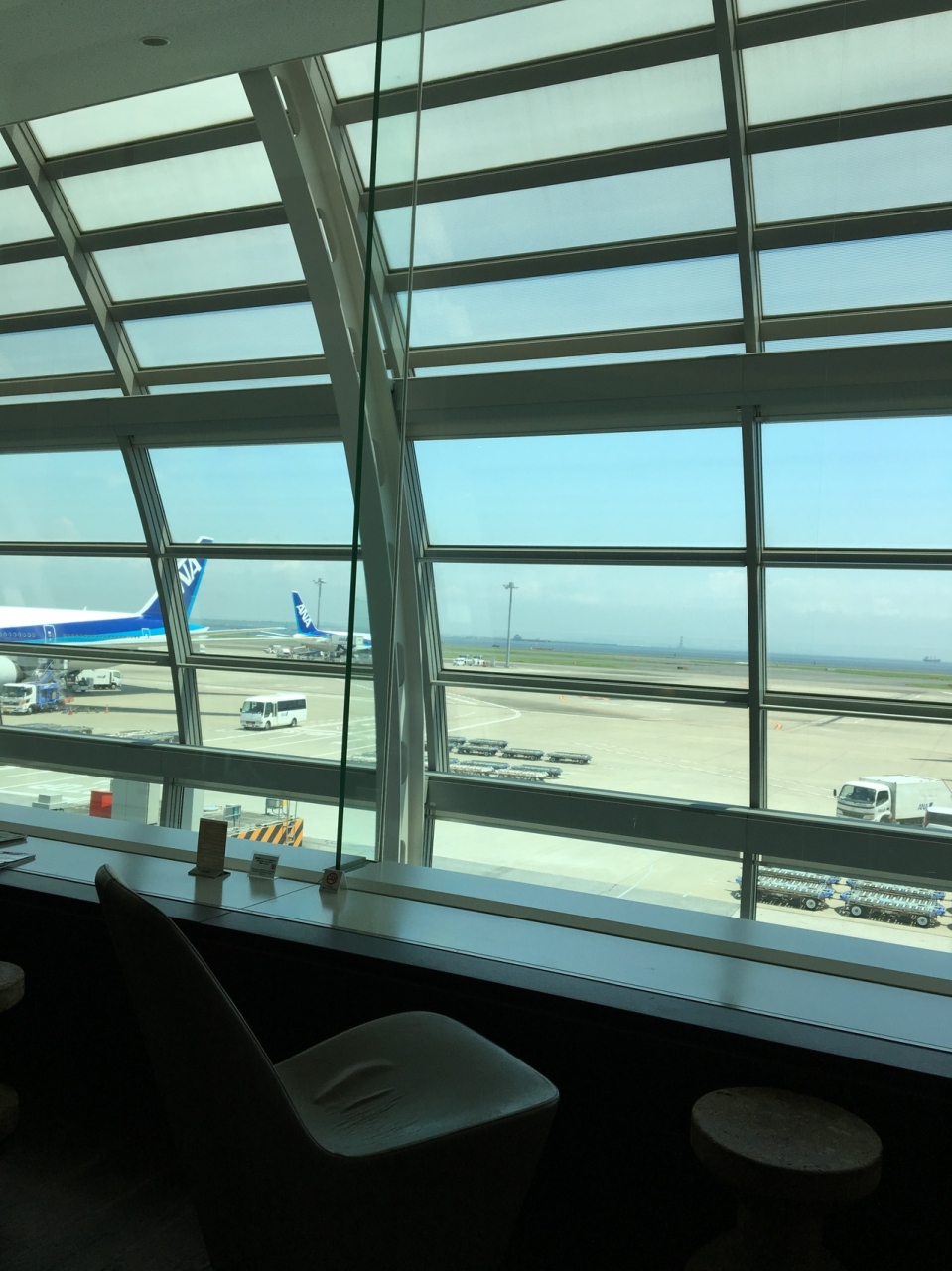 荷物預けのセルフサービスを初体験しました。案外簡単ですし、係員がいるので安心です。時間が短縮できたので余った時間をラウンジで過ごしました。搭乗口65番あたりにクレジットカードホルダー用ラウンジがあります。付近にANA FESTA(売店)もあり、お昼前には空弁を買う列が出来ていました。