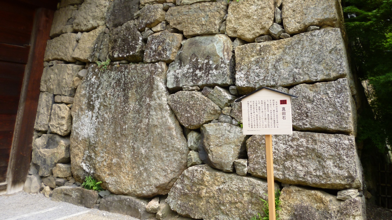 真田信之が親の形見として松代城に持って行きたかったそうですが、微動だもしなかったそうです。ちょっと裏を覗いただけだと、大きいけど薄いので何とか取り出せそうな気もしますが、しっかりかみ合って頑丈な城壁を構成しているのでしょうか。