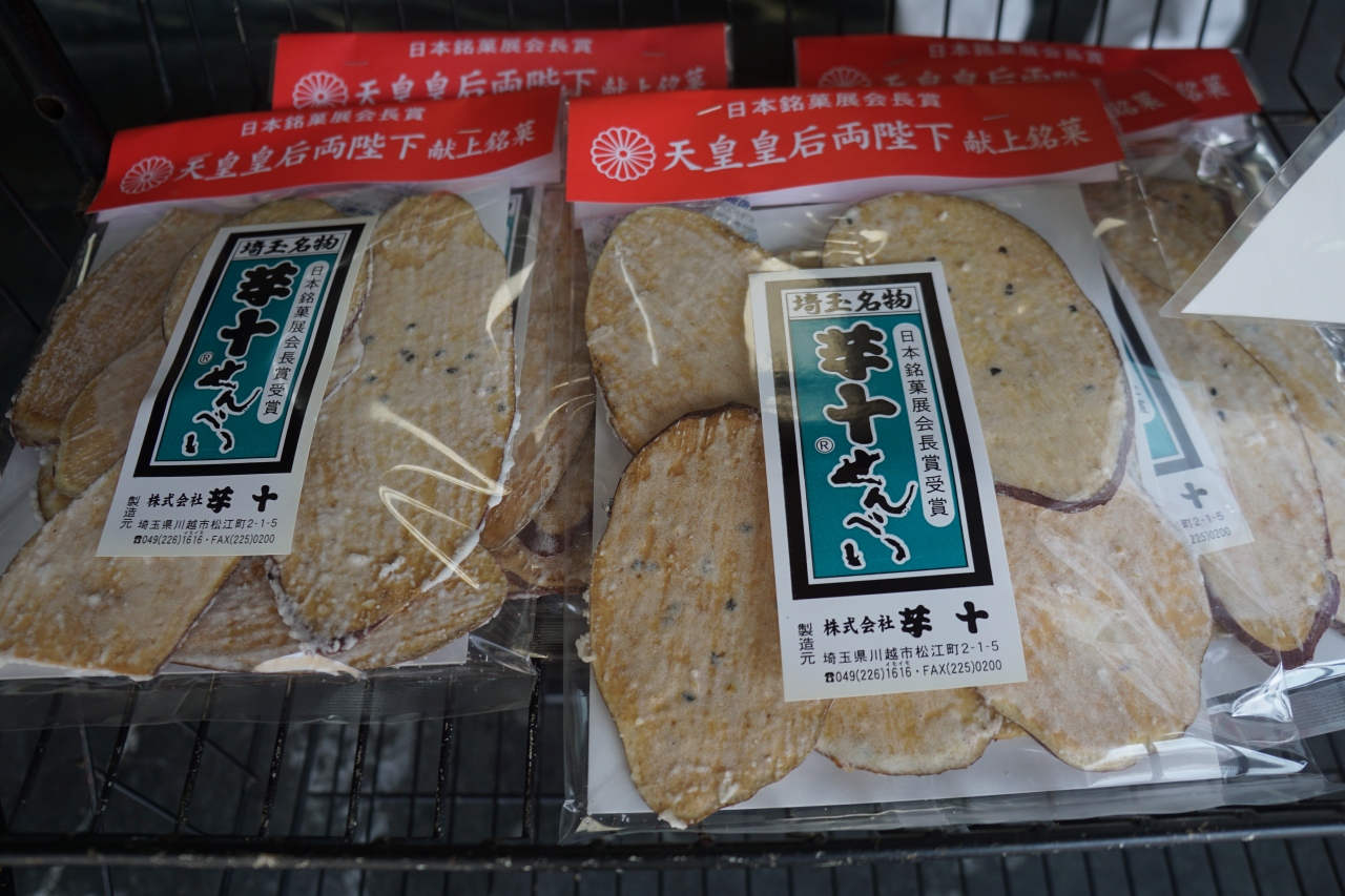 芋十は、蔵造りの街から少し離れているので、観光客にはちょっと気が付きにくいかもしれません。老舗風でも開けっぴろげなお店には、品数は少ないんですが天皇皇后両陛下献上菓子という芋菓子があって、それをお土産にしました。芋けんぴのタイプと薄くスライスしたタイプ。後者の方が変わっていますが、固そうでいてそれなりに食べやすい固さがたぶんお店の腕の見せ所かなと思います。