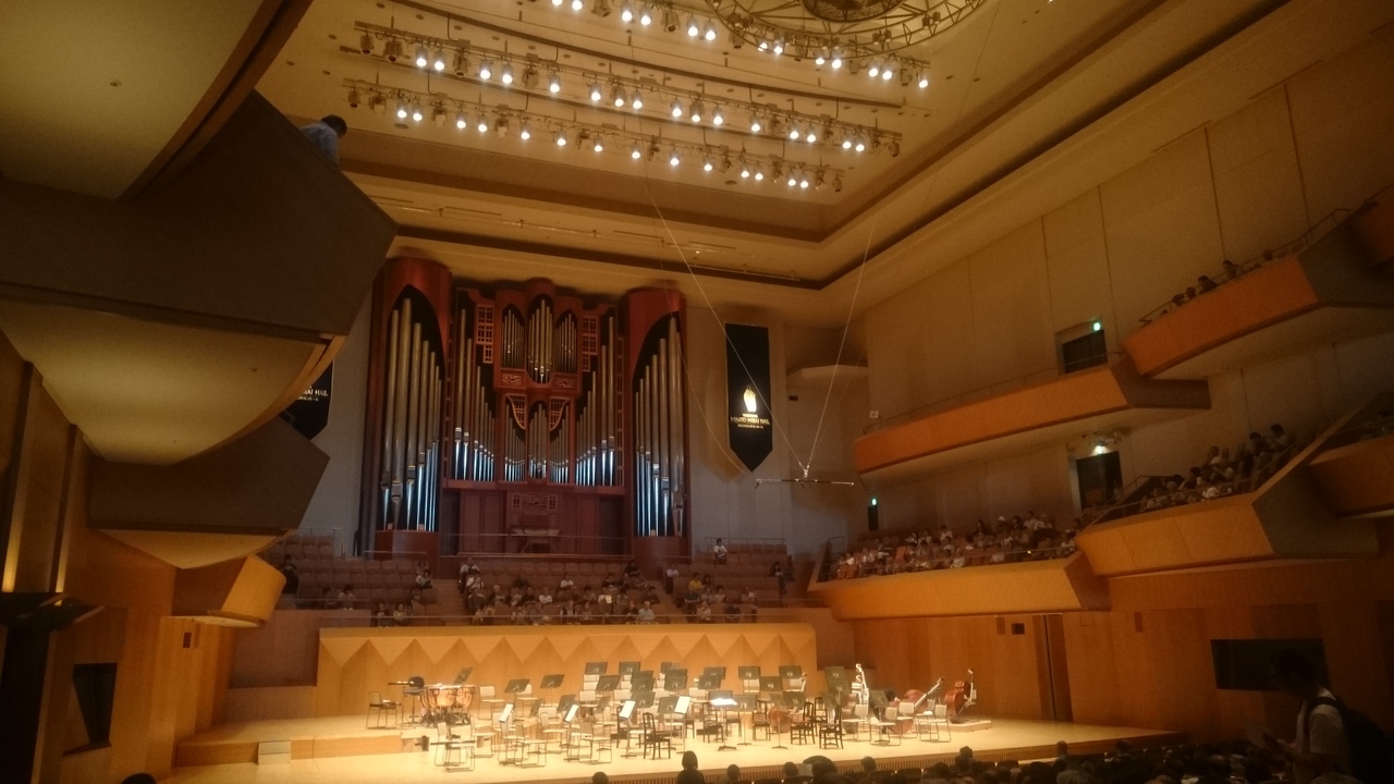 入り口は割りと質素で小さいですが、大ホールは三階席まであり、2000席ちょっとある立派なコンサートホールでした。木をふんだんに使った座席と内装でとても柔らかい雰囲気で、居心地が良かったです。