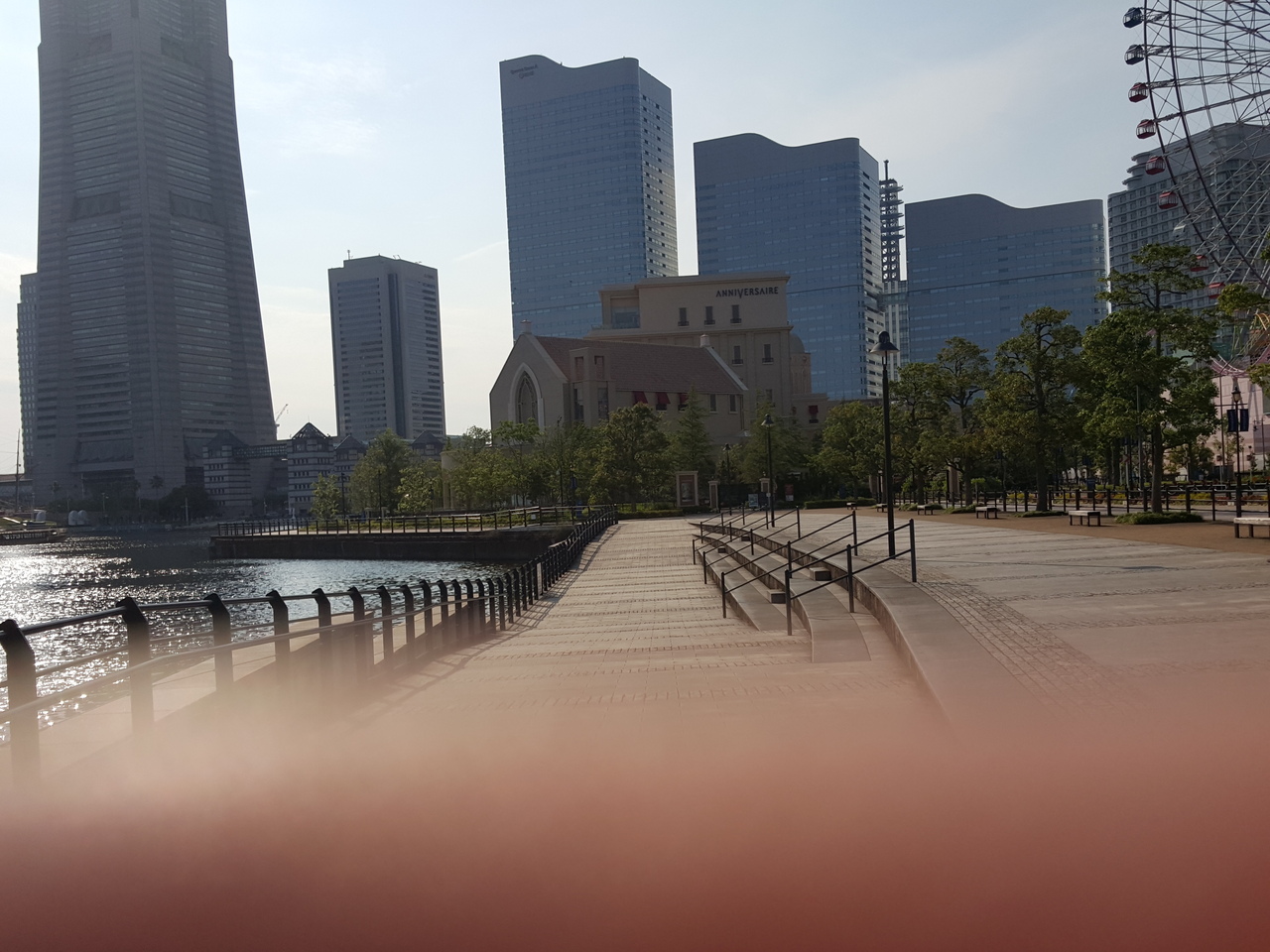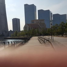 横浜みなとみらい地区、ワールドポーターズの前の運河との間です。