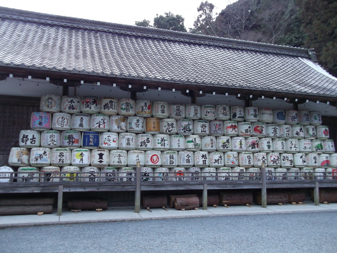阪急松尾大社駅を降りると目の前に巨大な鳥居があり、そこをくぐりぬけると松尾大社です。お酒の神様を祀る神社というだけあって、境内には奉納された酒樽が山のように積まれていました。本殿もとても立派で美しい庭園もあり、京都の中心からはやや遠いですが、なかなか見ごたえがありました。