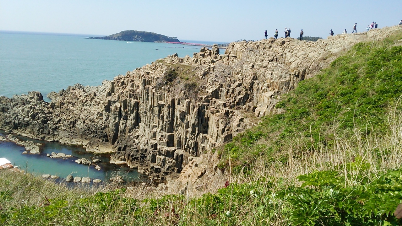 日本国内に柱状節理は数多くあり、けっこう見た気もしますが、ここほど規模が大きく雄大なものはないのではないでしょうか。崖の眺めに圧倒されます。事前に地名になったお坊様の話を聞き、自殺の名所とも聞いていたのですが、観光客で非常に混み合い、土産物店も並んでいるので、おどろおどろしい雰囲気は全くありませんでした。
