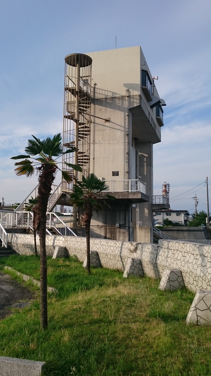 公園には潮吹き防波堤のレプリカがあり実際に水が流れています、