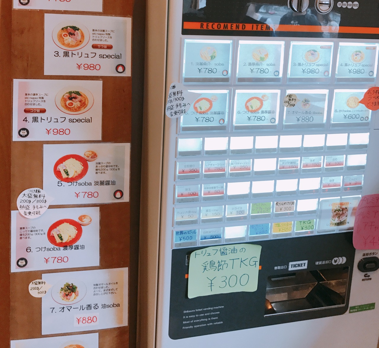 手作り、工夫の感じられるラーメン店で店主の元気の良さが感じられました。トリュフソースはミシュラン掲載フレンチの「Aki Nagao」特製です。トリュフノ香りが良く出ていてスープに合っていました。淡麗魚介スープは醤油の香りとだしが麺と絡んで美味しかったです。オマール香る油そばはもちもちの麺とたっぷり注がれた汁が良く絡んでいました。