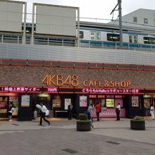 秋葉原駅電気街口を出てすぐ、JR高架下にあります。駅前ロータリーに面しており看板もとても派手なので目立ちます。平日夕方だったのですんなり入れました。店内はAKBの関連グッズがいっぱいでファンでなくても興味深かったです。