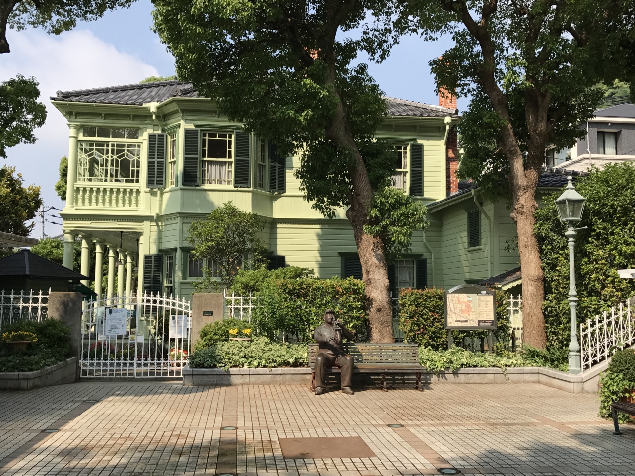 北野町広場の目の前にあるその名の通り「萌黄色」をした洋館です。かつてはアメリカ総領事が住んでいました。現在は中を公開していて、当時の家具などが飾られていて生活の様子がよくわかりました。また、2階のテラスからは神戸市街を見渡すことができます。